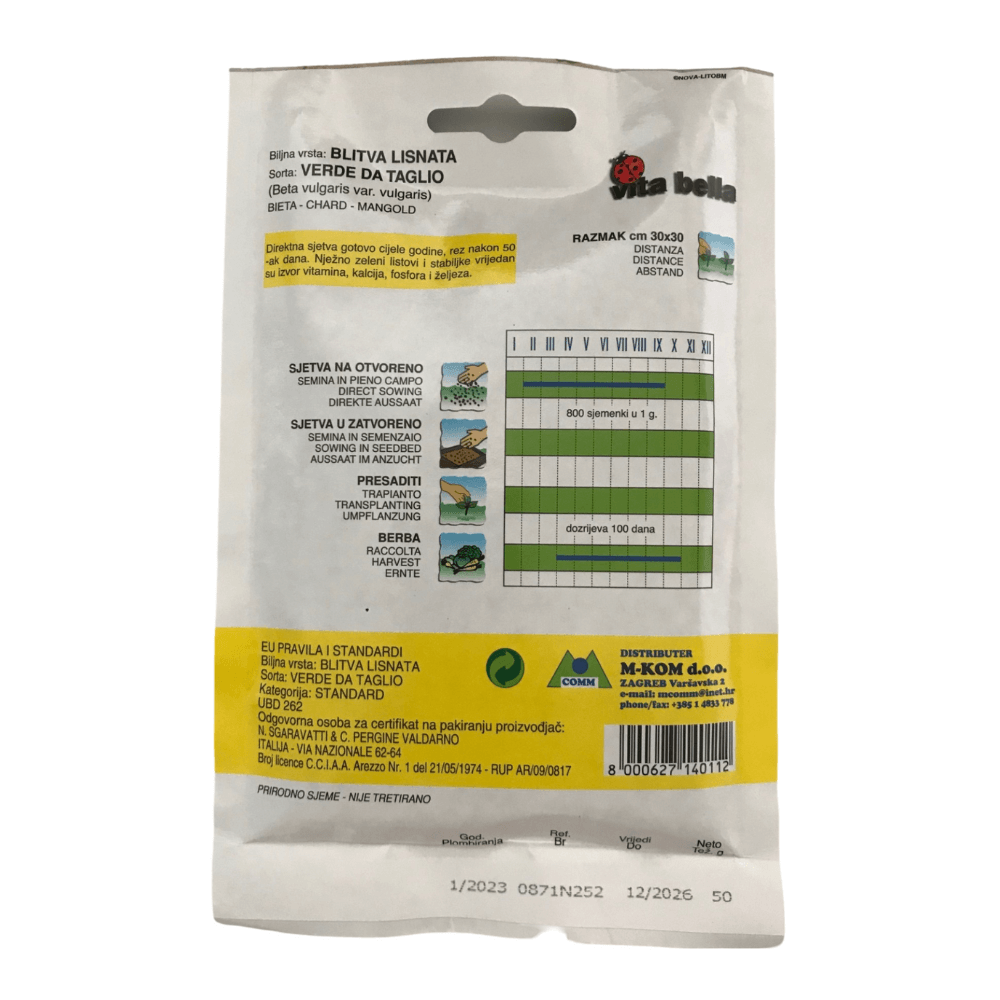 Prednja stranica vrećice sa sjemenjem blitva lisnata MangoldBlitva – lisnata Mangold 50g