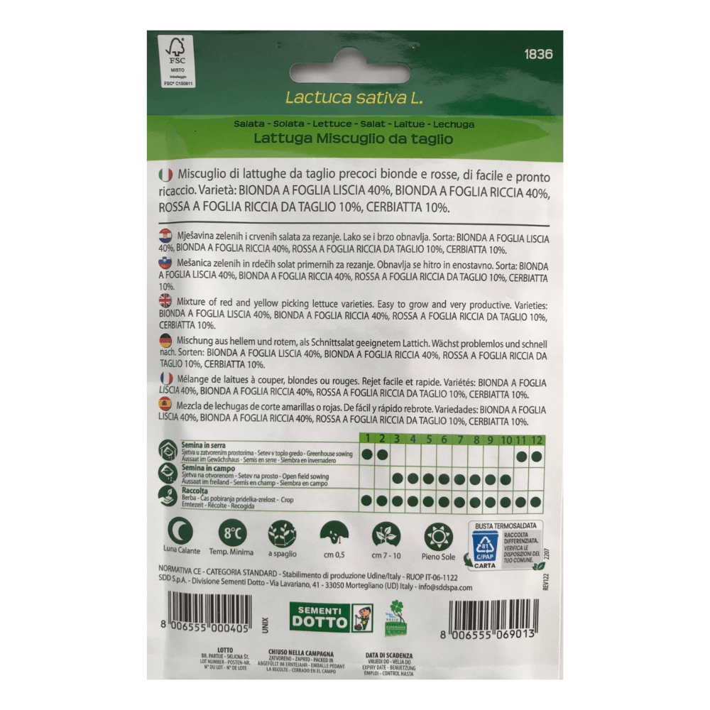 Prednja stranica vrećice sa sjemenjem salata mix lattuga miscuglio da trentoSalata – mix lattuga miscuglio da trento 21g